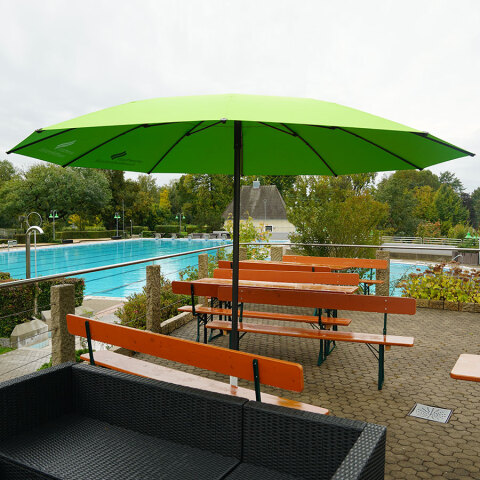 Der Sonnenschirm Q-Lido öffnet sich wie ein Regenschirm.